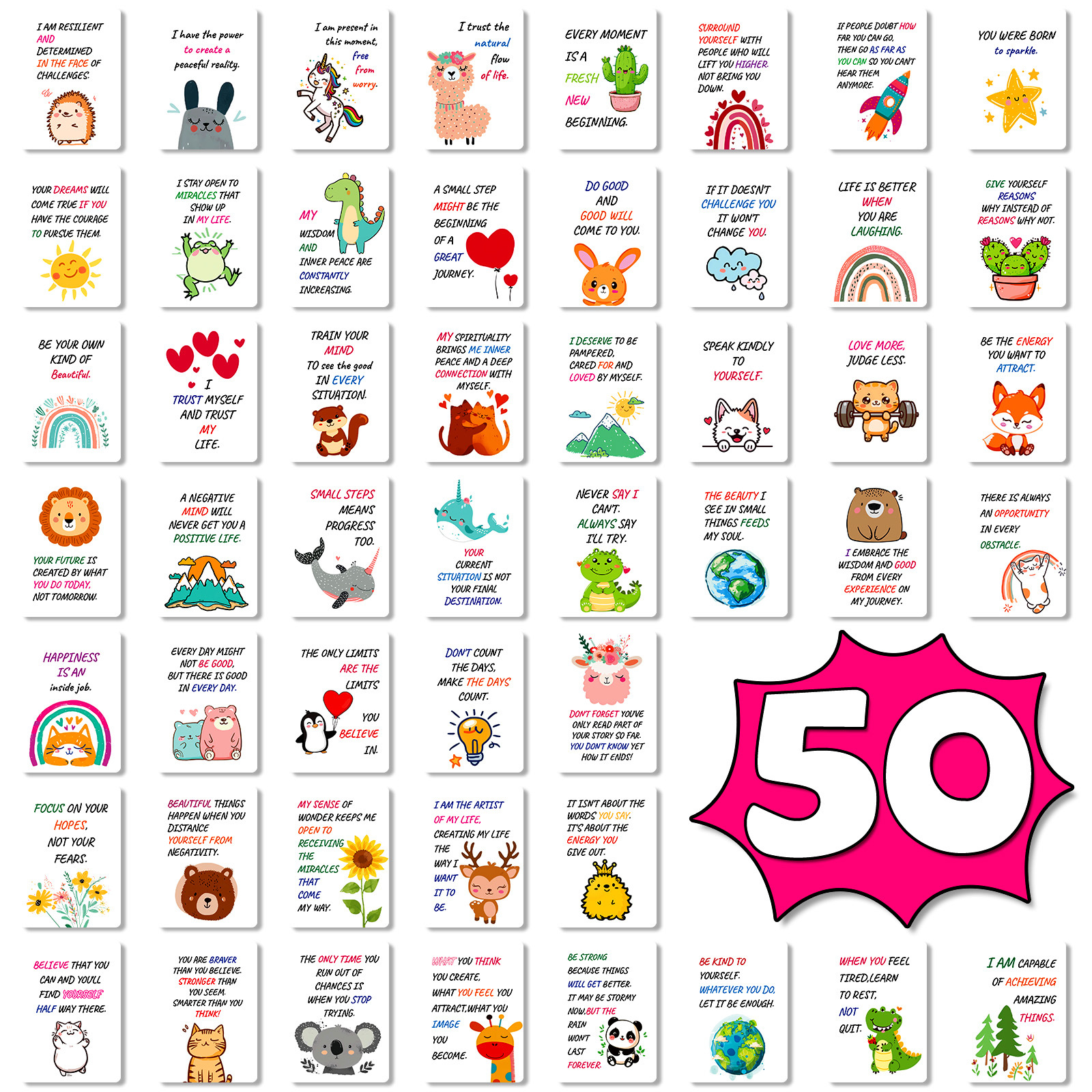 Bulk quantity: Set of 50 cards providing ample supply for various occasions